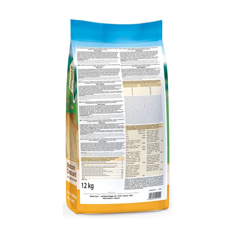 Stuzzy New Zealand&Australian Medium e Large Agnello è un alimento secco completo pensato appositamente per soddisfare le esigenze nutrizionali dei cani adulti di taglia media e grande. Le crocchette sono formulate con un'unica fonte di proteine animali, l’agnello, il che le rende perfette per cani che seguono diete ad eliminazione. Grazie alla combinazione di riso e proteina di patata, questo prodotto è altamente digeribile. Inoltre, l'integrazione di ribes nero e rosa canina apporta bioflavonoidi che, insieme agli acidi grassi Omega-6 e Omega-3, stimolano le difese immunitarie del cane. Ingredienti come il tarassaco, l'uva ursina e il cardo mariano aiutano l'organismo a eliminare le tossine, mentre la presenza di yucca schidigera, polpa di cicoria, FOS (fruttosio-oligosaccaridi) e lievito di birra con vitamina del Gruppo B svolgono un'azione prebiotica, favorendo un'efficace assimilazione dei nutrienti e contribuendo al controllo dei cattivi odori.