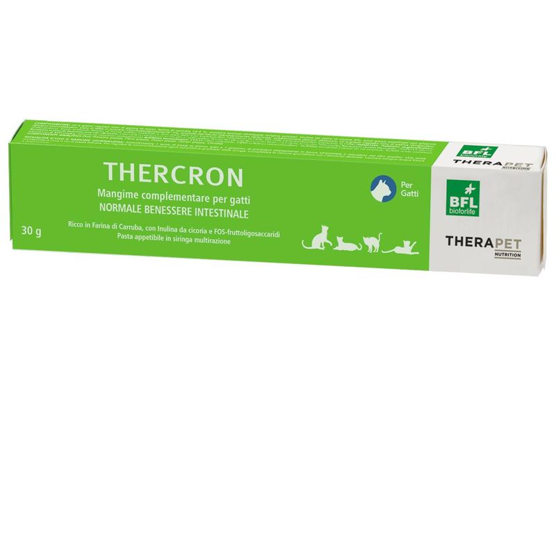 Therapet Thercron per Gatti è un mangime complementare in pasta appetibile, sviluppato specificamente per la gestione di gatti, sia giovani che adulti, affetti da colite cronica. Questo prodotto è stato formulato per favorire il normale benessere intestinale dei gatti di ogni età, garantendo un supporto ottimale anche in caso di disturbi gastrointestinali persistenti. Therapet Thercron è caratterizzato da aromi nuovi e altamente appetibili, pensati appositamente per soddisfare anche i gatti più esigenti, facilitando l'assunzione regolare del prodotto.