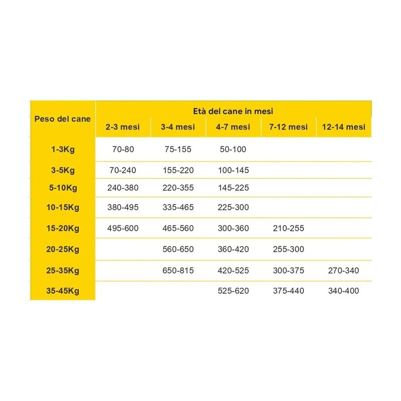 • Ideale per cuccioli di qualsiasi razza, a partire dai 40 giorni fino ai 12 mesi circa.