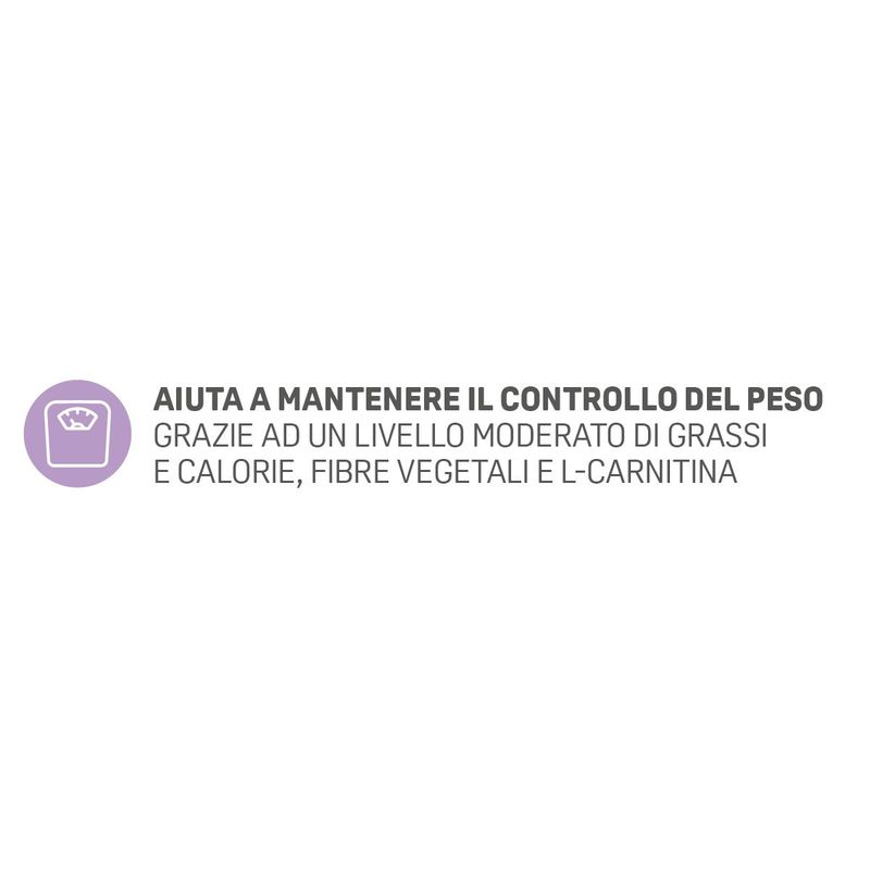 • Livelli controllati di grassi e calorie, fibre vegetali e L-carnitina contribuiscono a un peso corporeo ideale