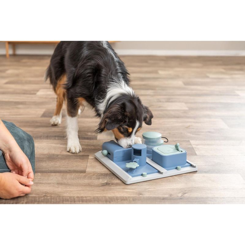 Il Trixie Gioco Cane Puzzle Activity Poker Box è un gioco di strategia e attivazione mentale, progettato per offrire al tuo cane un’esperienza coinvolgente e sempre diversa. Si tratta di un vero e proprio puzzle interattivo, composto da una tavola con 4 elementi e 5 diversi moduli di apertura, ognuno con un meccanismo differente che il cane dovrà imparare a usare per guadagnarsi la ricompensa. Perfetto per cani di taglia media e grande o per cuccioloni curiosi, stimola concentrazione, pazienza e problem solving, promuovendo la calma e l’autocontrollo. Realizzato in plastica resistente, il gioco è dotato di piedini antiscivolo per garantire maggiore stabilità durante l’utilizzo, anche su superfici lisce. È ideale sia per l’attività condivisa che per i momenti di gioco autonomo, offrendo stimoli alternativi alla noia. Incluso nella confezione, un libretto illustrativo con esercizi e consigli per utilizzare al meglio il gioco e rendere l’esperienza ancora più educativa e divertente.