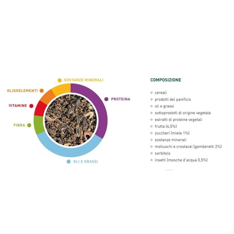 Il Padovan Granpaté Insects è un alimento umido secco pastoso formulato appositamente per gli uccelli insettivori a becco fine, come usignolo del Giappone, merlo Shama, Bulbul e molte altre specie. La sua ricetta unica contiene una miscela bilanciata di insetti e piccoli crostacei, che forniscono proteine animali altamente digeribili, fondamentali per il benessere generale e il mantenimento di un piumaggio sano e brillante. Arricchito con vitamine e aminoacidi essenziali, contribuisce a rafforzare le difese immunitarie, a sostenere il metabolismo e a mantenere gli uccelli sempre vitali. Inoltre, grazie alla confezione salva freschezza, la qualità del prodotto resta intatta più a lungo. Naturalmente, la formula è senza coloranti e conservanti artificiali, per un’alimentazione sicura e genuina.