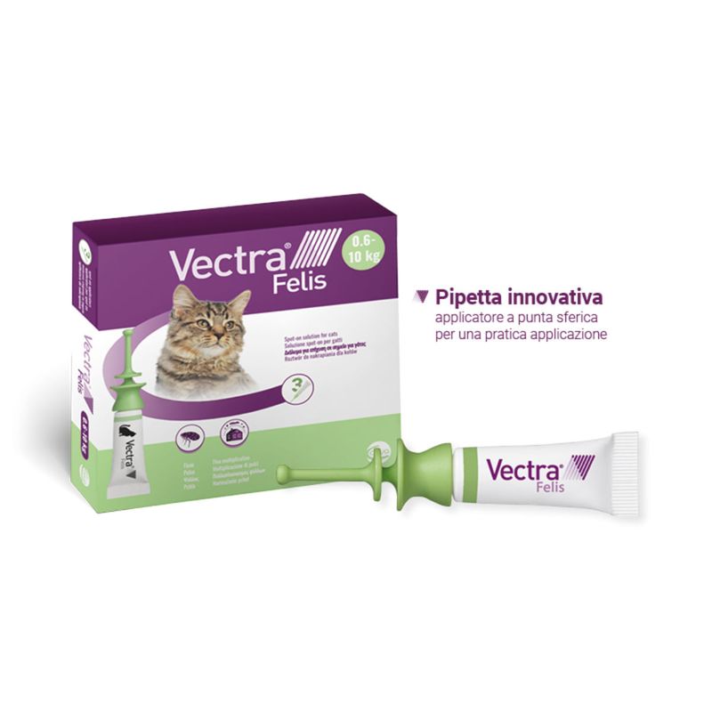 Vectra Felis è una pipetta innovativa contro le pulci. Specifica per il trattamento Antiparassitario del gatto e la protezione dell’ambiente circostante.