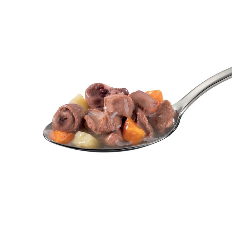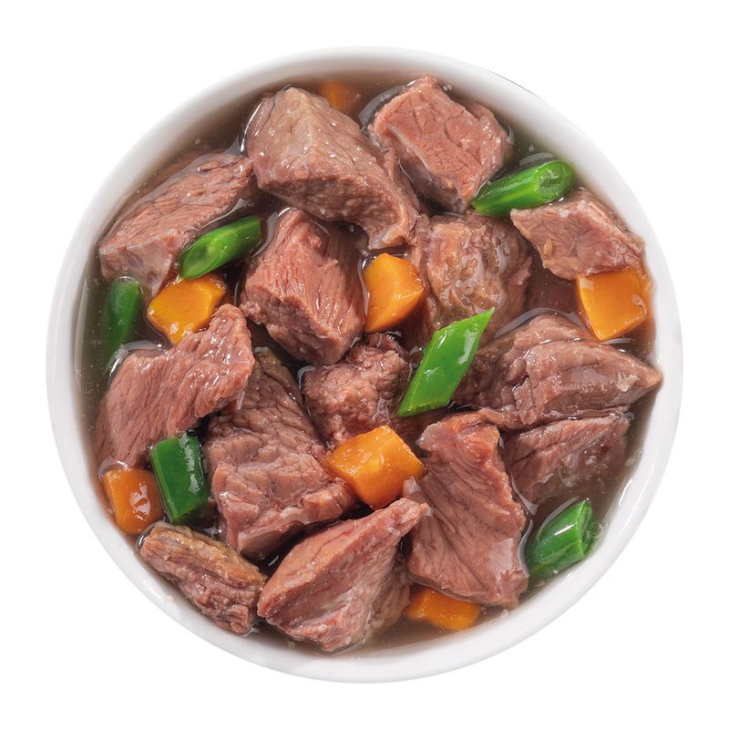 N.B. Il prodotto è disponibile in formato lattina multipack da 4x150G nei gusti a scelta tra: Fegatini con Cuori di Pollo e Carote, Manzo con Carote e Fagiolini, Petto di Pollo con Fagiolini e Carote, Petto di Pollo con Fegatini, Petto di Pollo con Prosciutto di Pollo, Salmone con Carote e Fagiolini, Tonno.
