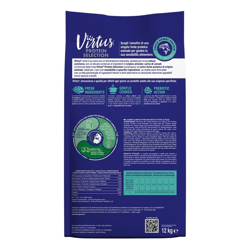 Se stai cercando un alimento secco monoproteico di alta qualità per il tuo cane, allora Virtus Protein Selection Dog è la scelta ideale. Sviluppato con cura per soddisfare le esigenze nutrizionali specifiche dei cani adulti, Virtus Protein Selection Dog offre una soluzione completa e bilanciata per il benessere del tuo fedele amico a quattro zampe.