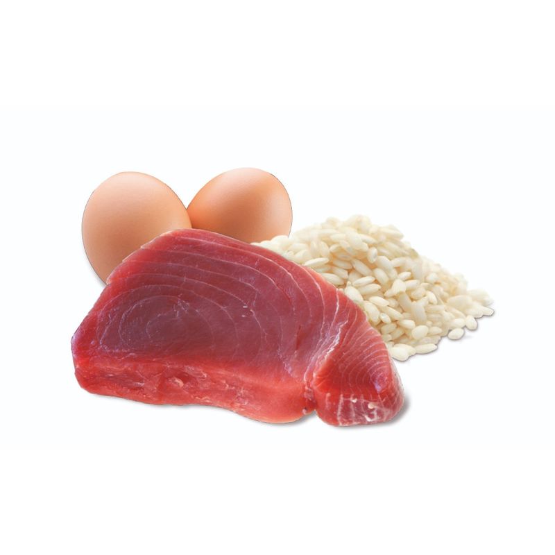 •Contiene ingredienti 100% naturali e il 75% di carne o pesce.