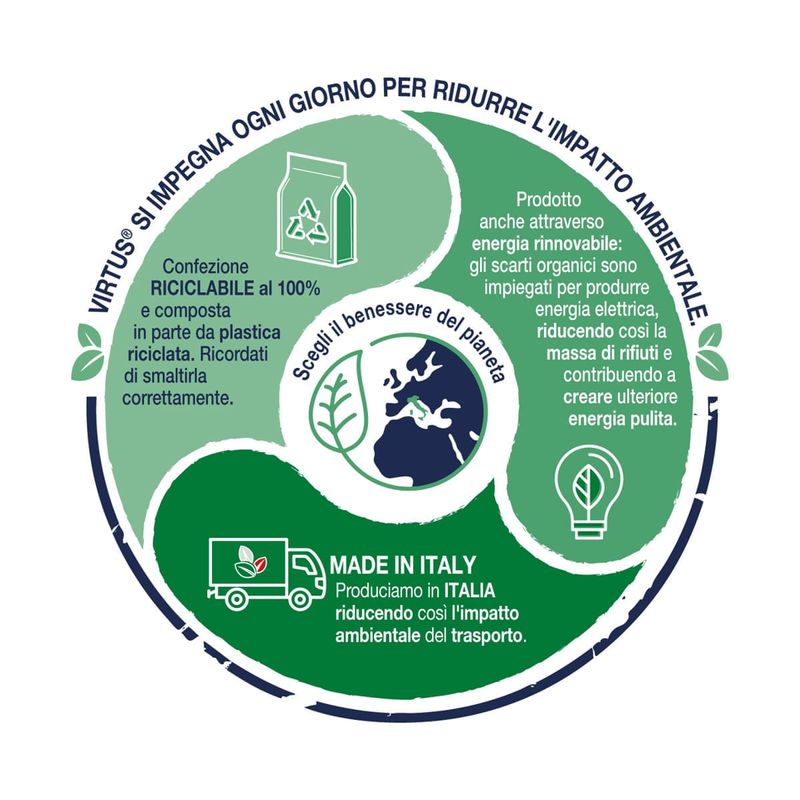 Virtus è un brand appositamente studiato per soddisfare le vere esigenze nutrizionali del cane e del gatto attraverso una gamma di alimenti "Cruelty Free", "Grain Free" o "Low Grain". La base di una dieta sana e naturale per il tuo amico a quattro zampe prevede un'alta percentuale di proteine, una quantità adeguata di grassi e pochi carboidrati per offrire genuinità e naturalità. Gli alimenti secchi, umidi e gli snack di Virtus contengono fino all'80% di ingredienti di origine animale attentamente selezionati, con una fonte proteica animale di alta qualità sempre come primo ingrediente.