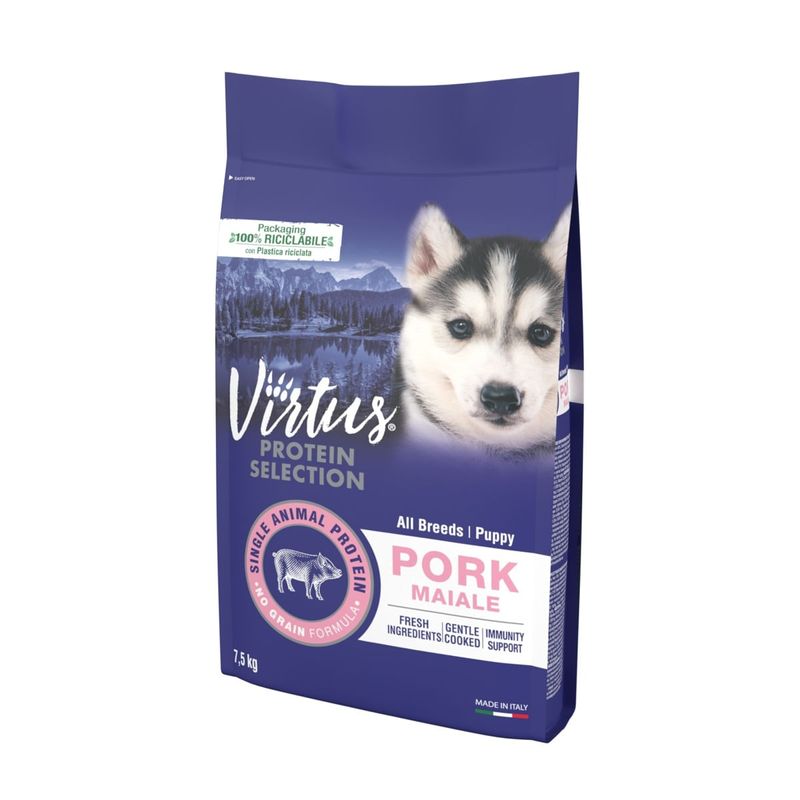 Scegli il meglio per la crescita del tuo cucciolo con Virtus Protein Selection Puppy Maiale la ricetta naturale che lo farà crescere forte e felice!