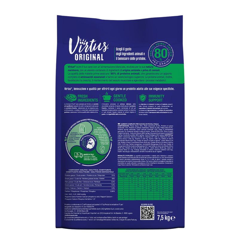 Virtus Puppy Small Breeds Riviera Formula è quindi la scelta ideale per garantire una nutrizione completa e un supporto ottimale alla crescita del tuo cucciolo.