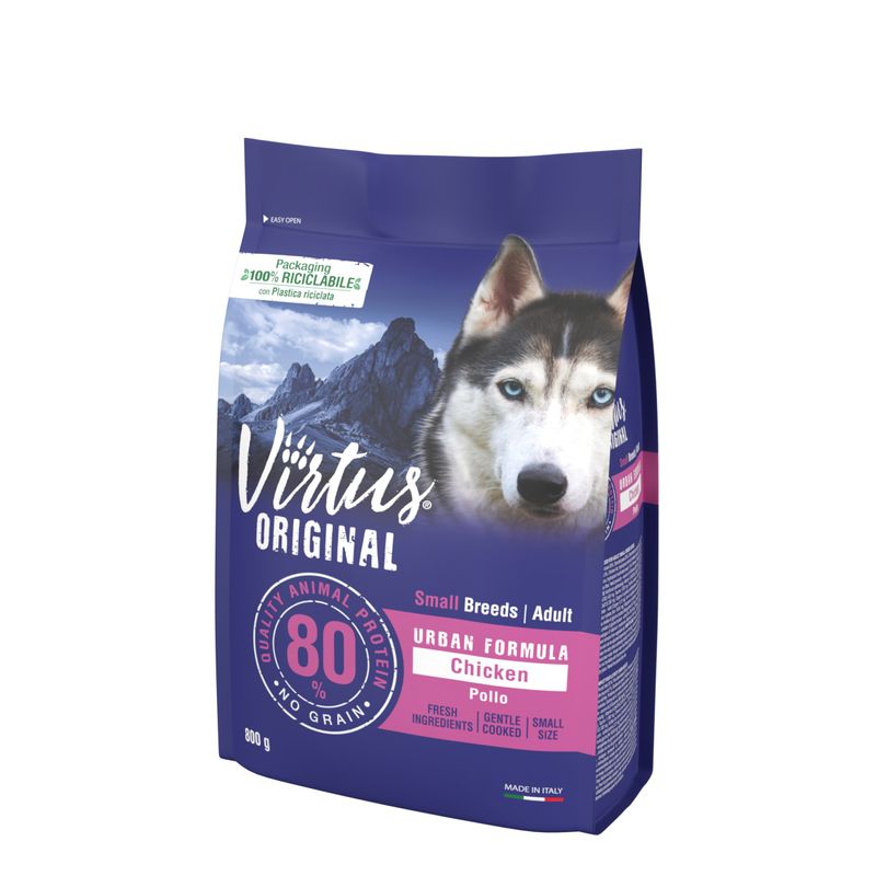 Attenzione: Virtus Dog Adult Small Breeds Urban si rinnova con nuovo packaging e nuova formulazione. Potresti ricevere il nuovo o il vecchio pack a seconda della disponibilità a magazzino.