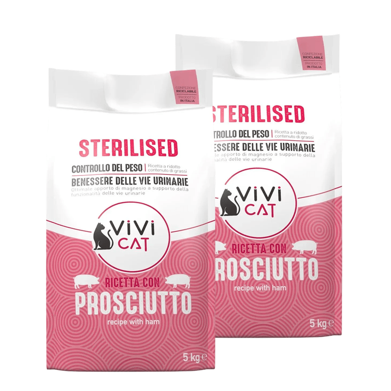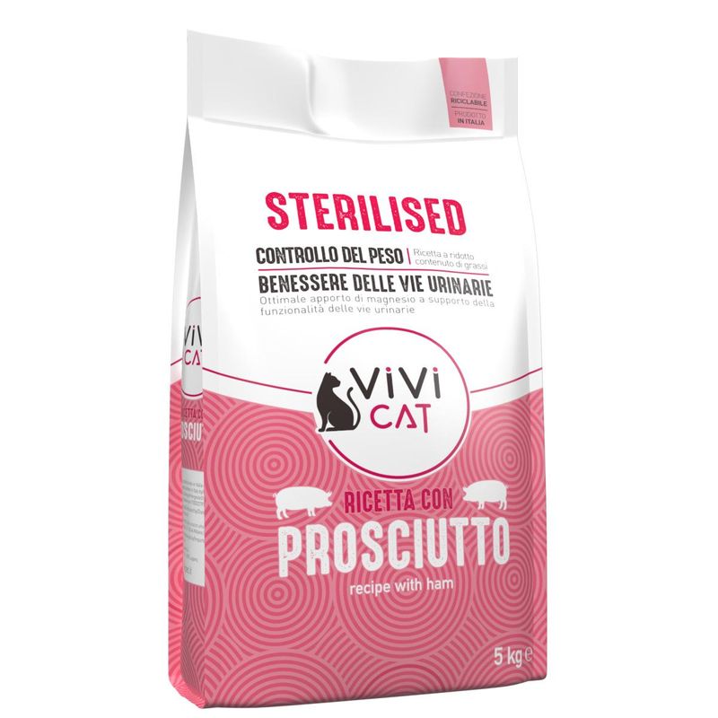 Scegli ViVi Cat Sterilised al Prosciutto per garantire al tuo felino un'alimentazione equilibrata e gustosa ogni giorno.