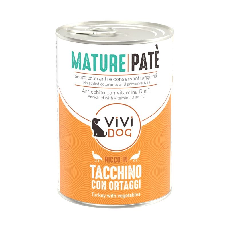 Per i nostri amici a quattro zampe più maturi, ogni boccone deve essere speciale: scegli ViVi Dog Mature Paté 400G e rendi il momento del pasto un gesto d’amore quotidiano!