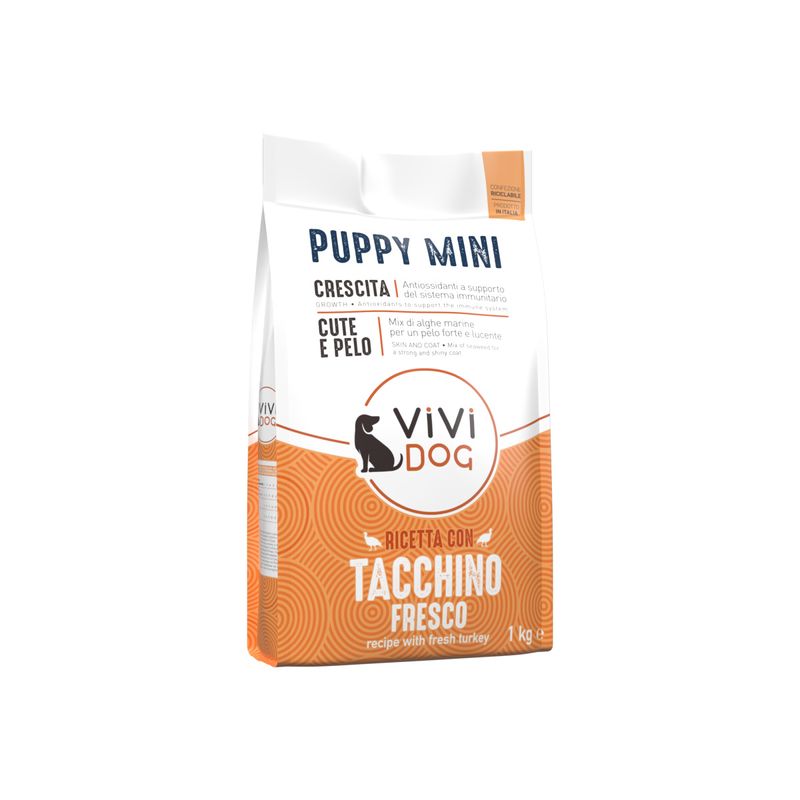 Scegli Vivi Dog Puppy Mini Tacchino per offrire al tuo cucciolo una dieta varia, completa e bilanciata che lo aiuterà a crescere felice, sano e pieno di vitalità.
