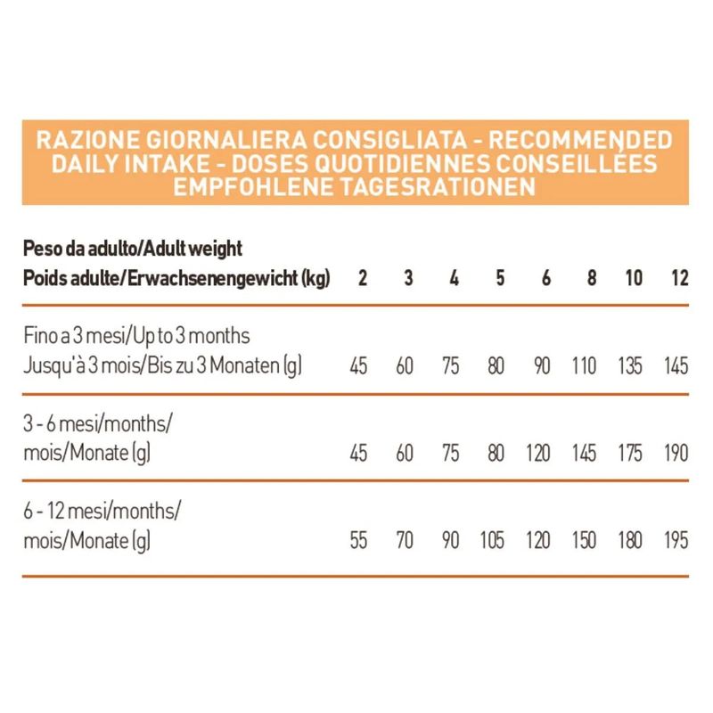 Nuova formula migliorata e nuova dimensione della crocchetta. Per il primo utilizzo si consiglia di mescolare le crocchette con quelle utilizzate in precedenza, al fine di facilitare la transizione.