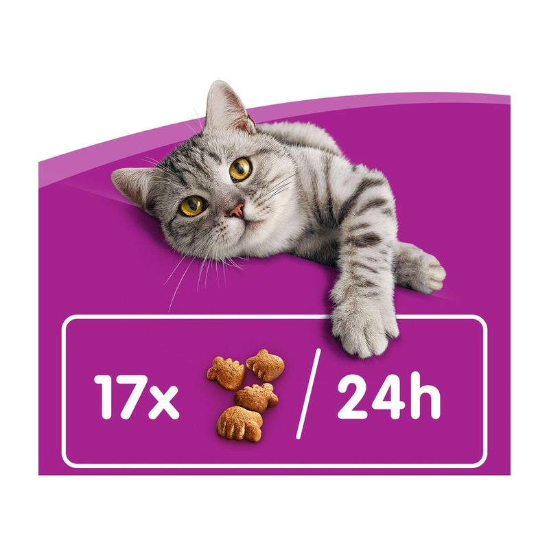 Gli alimenti Whiskas sono ricchi di proteine e disponibili in varietà appositamente formulate per gatti adulti, gattini e gatti anziani.