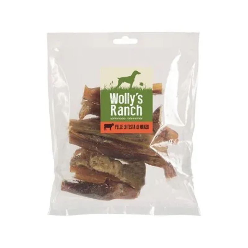 Wollys Ranch Cane Pelle Di Testa è uno snack delizioso e nutriente pensato per cani adulti, che rappresenta un'ottima scelta per chi desidera offrire al proprio amico a quattro zampe un momento di piacere autentico. Non c'è niente di meglio per un cane che gustare uno spuntino saporito e irresistibile, e Wolly's Ranch riesce a soddisfare queste esigenze con un prodotto di alta qualità. Lo snack è essiccato con cura per preservare al meglio i nutrienti e i minerali naturali, mantenendo intatti anche gli odori e i sapori originali. Questo processo di essiccazione garantisce un’altissima appetibilità, rendendo la pelle di testa di manzo un vero e proprio premio per il tuo cane. È uno snack 100% naturale, privo di conservanti, coloranti e appetizzanti artificiali. Questo significa che puoi offrire al tuo cane uno spuntino sano e genuino, senza compromettere la sua salute. Promuove la masticazione e contribuisce anche a mantenere i denti e le gengive in salute, grazie alla loro consistenza dura e fibrosa.