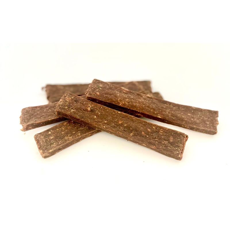 Scegliendo Wolly's Ranch Dog Snack Strisce di Coniglio, coccoli e promuovi la salute dentale del tuo cane.