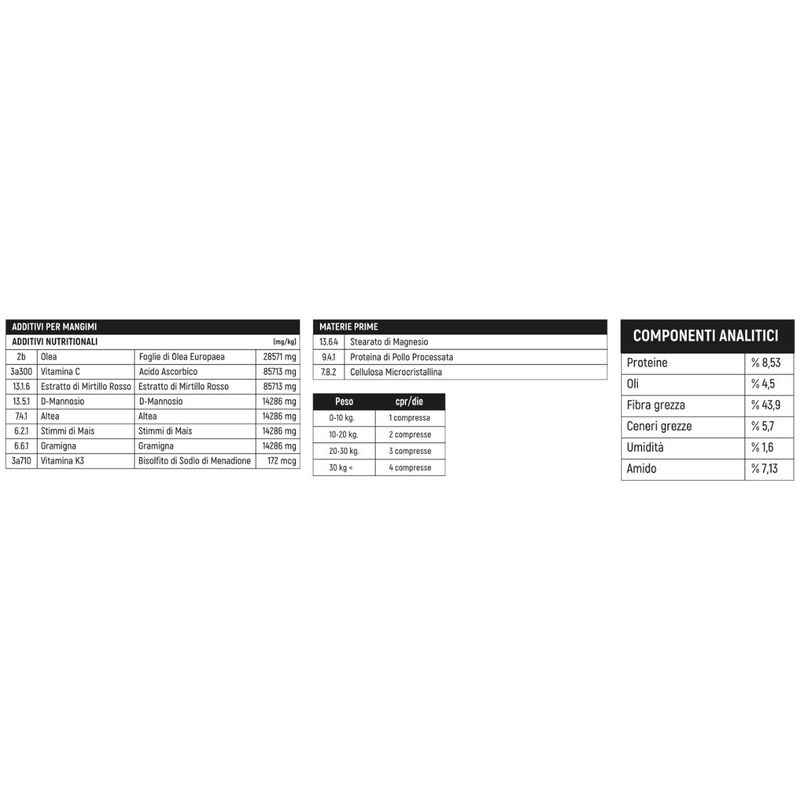 • Complemento alimentare in compresse per cani e gatti di tutte le taglie e razze.