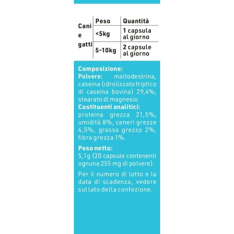• Facile da somministrare: basta aprire la capsula e mescolare al cibo.
