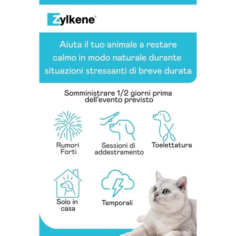 Sostieni il benessere e la serenità del tuo piccolo amico con Zylkene Rilassante per Cani e Gatti 75MG — il supporto naturale e sicuro per affrontare con tranquillità ogni cambiamento!
